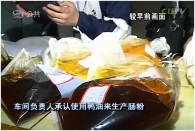 龍崗區(qū)食藥局食品安全監(jiān)管科副科長(zhǎng)崔世峰:“從檢查和抽樣結(jié)果來(lái)看,食品廠當(dāng)時(shí)使用的鴨油是屬于來(lái)源不合法。目前稽查大隊(duì)已經(jīng)對(duì)鴨油進(jìn)行立案并查處。檢測(cè)結(jié)果表面生產(chǎn)腸粉的鴨油存在指標(biāo)不合格,來(lái)源不明等問(wèn)題。”