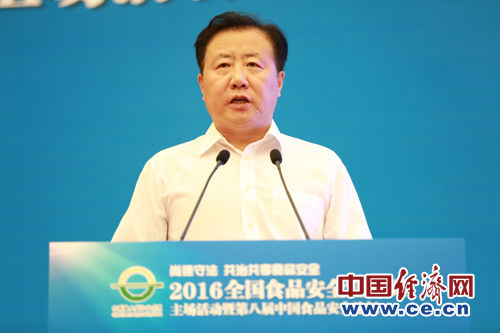 農業(yè)部廣德福:推進“瘦肉精”等7項專項整治行動,2016全國食品安全宣傳周主場活動暨第八屆中國食品安全論壇6月14日在京舉辦。中國食品安全論壇為全國食品安全宣傳周主題活動之一,邀請有關部門負責人及嘉賓圍繞宣傳周主題演講,并有多個分論壇活動。圖為農業(yè)部農產品質量安全監(jiān)管局巡視員廣德福。中國經濟網 裴小閣/攝